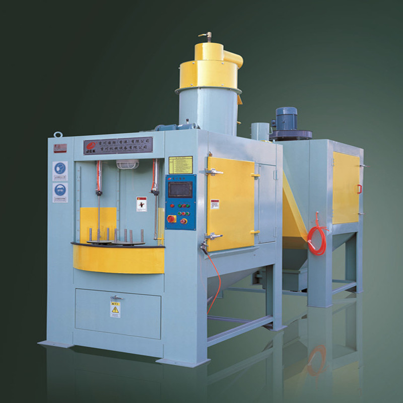 轉(zhuǎn)盤(pán)式自動(dòng)噴砂機(jī)又叫轉(zhuǎn)臺(tái)式自動(dòng)噴砂機(jī)、間隙式自動(dòng)噴砂機(jī)、連續(xù)式自動(dòng)噴砂機(jī)。他也是一款高產(chǎn)能、高效率的自動(dòng)噴砂機(jī)。噴砂大轉(zhuǎn)盤(pán)上上配置8個(gè)小轉(zhuǎn)盤(pán),又分為4個(gè)區(qū)域,噴砂裝卸區(qū)、噴砂待加工區(qū)、噴砂加工區(qū)、吹凈室。
